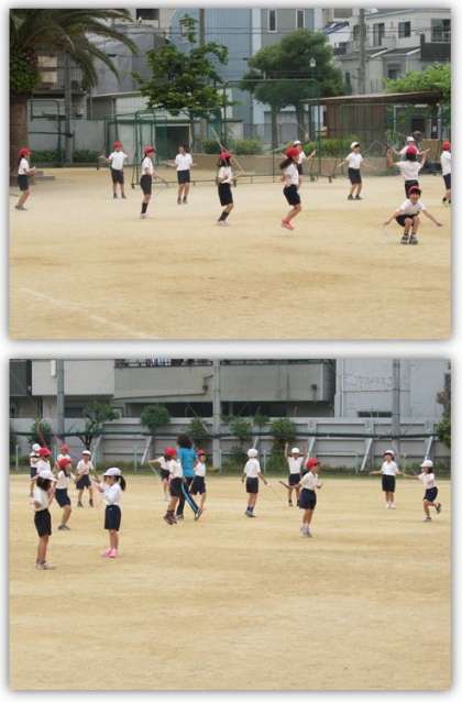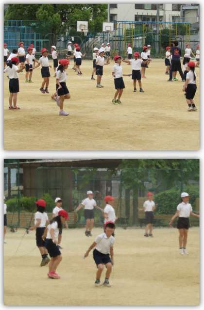 3年生の体育の学習です。準備運動として、縄跳びに取り組んでいます。