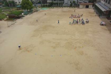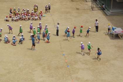 3年生の体育の様子をご紹介します。3年生が2時間目の体育で、リレーをしています。クラス対抗リレーなので、応援する子どもたちの声も、一段と大きくなりました。