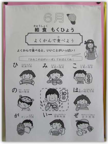 6月の給食目標です。6月は、『よくかんで食べよう』が目標です。