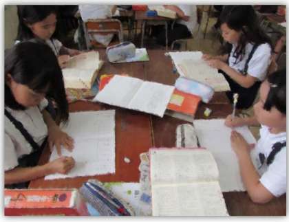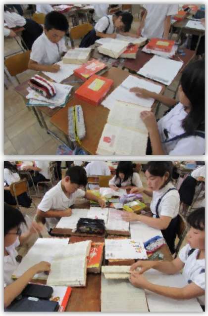 4年生の国語の学習です。『走れ』に出てくる言葉の意味を、国語辞典を使って調べました。