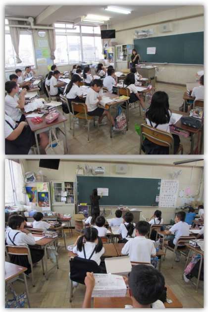 4年生の理科の学習です。電気の働きで動くスポーツカーを作ります。今日はまず、ビニールどう線を、定められた長さに切るところからです。