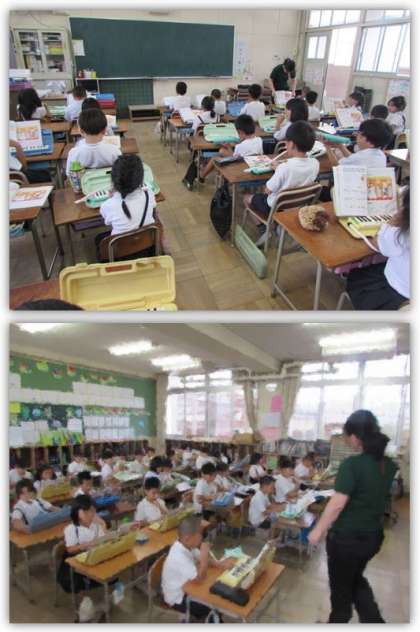 2年生の音楽の学習です。鍵盤ハーモニカで『かっこう』の演奏に取り組んでいます。
