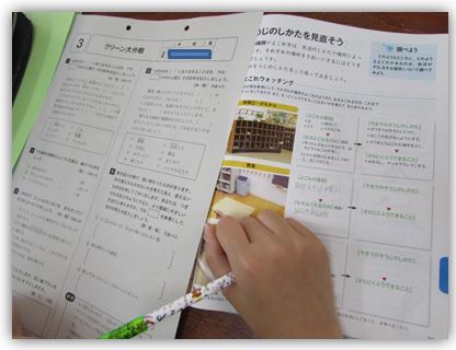 6年生の家庭科の学習です。生活の仕方や場所と、ごみの種類や汚れ方、掃除の仕方についてまとめました。