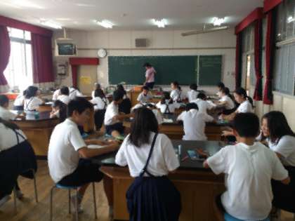 6年生が理科室で学習しています。今日の理科の学習は「ヒトや動物の体のつくりとはたらき」です。