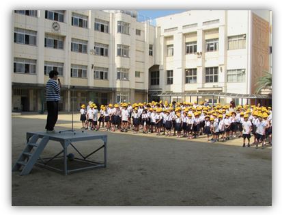 最後に、生活指導担当の先生から、今週の生活の目当て『危険な遊びはやめよう』についての話がありました。