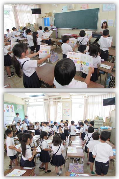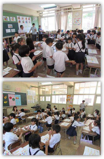 本日の3時限目、1年生の音楽の研究授業を行いました。今日は言葉を使って、リズムを考える学習(たまご→タンタンタンウン、たまごやき→タタタタタンウン)をしました。大勢の先生たちが参観する中、子どもたちはしっかりと頑張ることができました。