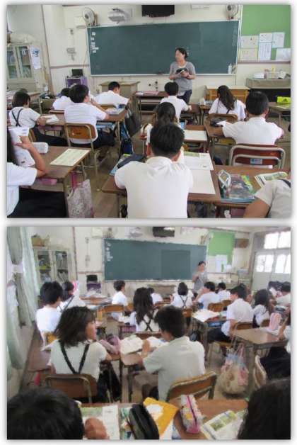 5年生の社会科の学習です。米づくりの1年間の仕事の様子について調べ、収穫までにさまざまな作業を行う必要があることに気づきました。