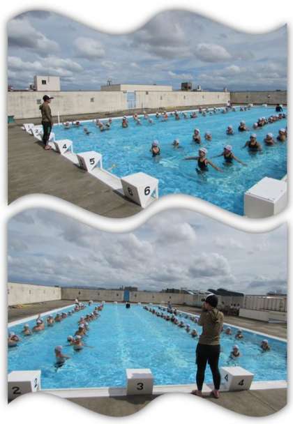 4年生の水泳学習の様子です。画像は、水慣れの体操をしている場面です。