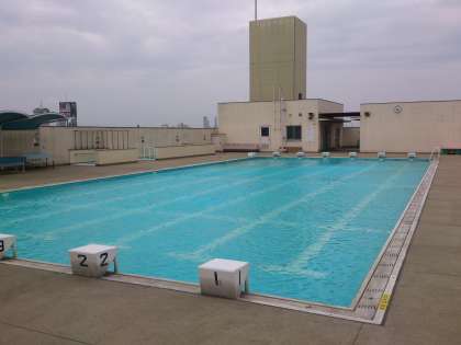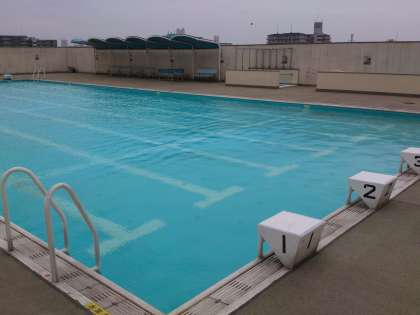 今日のプールの様子です。掃除をし、すっかりきれいになって、水を湛えています。明日からの水泳学習に向け、準備は万端です。