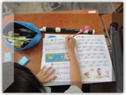 3年生の音楽の学習です。「にわとりポルカ」の階名を確認しています。
