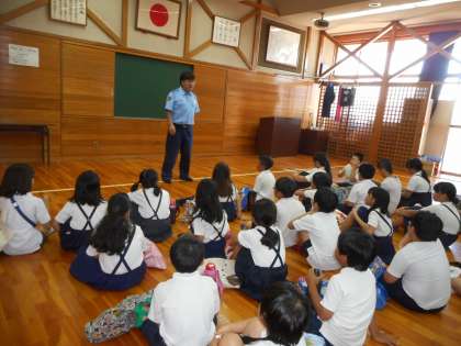 7月4日(水)5日(木)9日(月)の三日間に分かれて西成警察署に社会見学に行きました。柔道の練習の見学、防犯・交通安全指導、パトカーの見学、警察官の方のお話