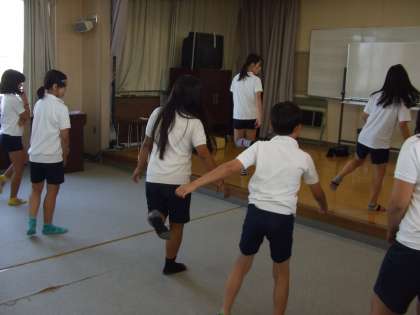 ダンスクラブの様子です。第2音楽室で、曲に合わせてダンスをしています。児童集会での発表を目指して、頑張っています。