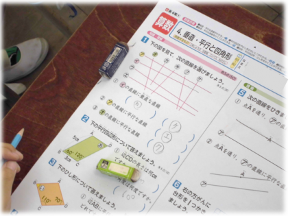 4年1組が算数の「垂直・平行と四角形」のテストをしました。