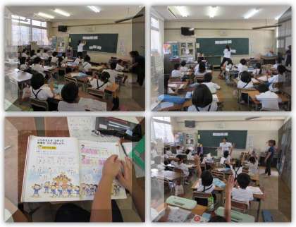2年生の音楽の学習です。2拍子や3拍子を使って、お祭りにあうリズムを考えました。