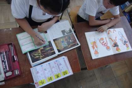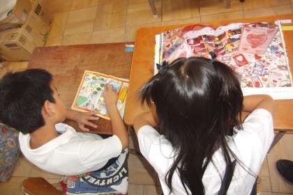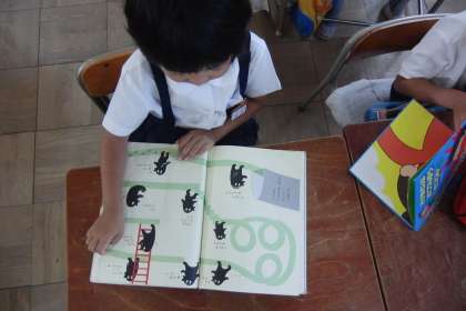 2年生の子どもたちも、自分で本を選んで、静かに読書をしています。「読書ノート」への記録も進んでいます。