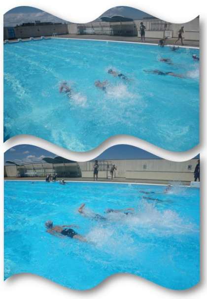 プール開放7日目、3・4年生の様子です。バタ足・クロールの練習の後、男女対抗で、浮島を使ったレースを行いました。最後は、先生が鬼になって、水中鬼ごっこをしました。