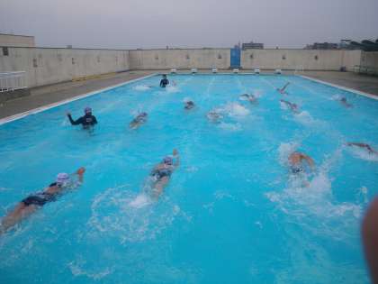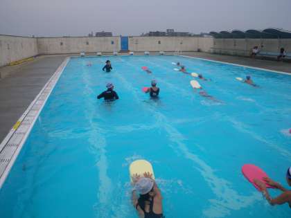 6時間目、6年生の水泳学習です。今日はクロールを2本泳いだ後、平泳ぎの練習をしました。平泳ぎはキックが難しく、ビート板を持ってキックだけで進む練習をしました。その後、腕も使って平泳ぎで25メートルにチャレンジしました。6年生の目標として、平泳ぎで25メートルを目指します。