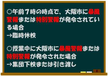 ◎授業中に暴風警報または各種特別警報が発令された場合
