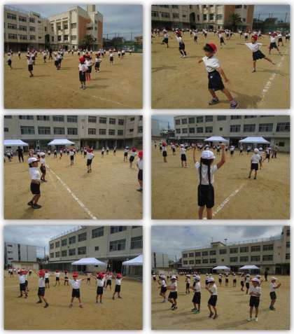 1年生の練習の様子です。運動場で、ダンスの練習に取り組みました。