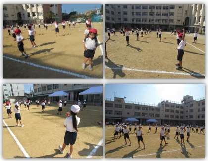1年生の練習の様子です。今日はダンスとかけっこの練習を行いました。