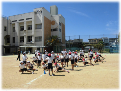 今日は運動場でソーラン節の練習や団体競技の練習をしました。