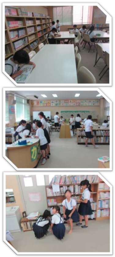 9月21日(金) 5年生が学校図書館に来ました。本を選び、静かに読書を楽しんでいます。