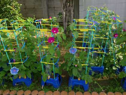 1年生のアサガオも、たくさん咲いています。明日からの個人懇談会のお帰りの際に、お持ち帰りください。