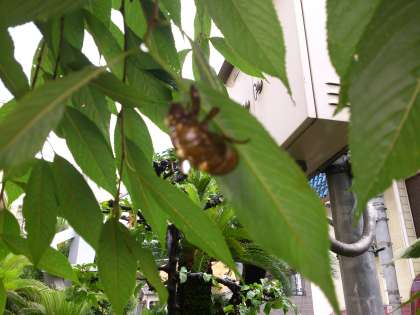 教室で学習をしていても、窓の外からセミの鳴き声が聞こえてくるようになりました。本格的な夏の到来を感じさせます。校内を見て回ると、木の枝に、雨に濡れて光るセミの抜け殻を見つけました。