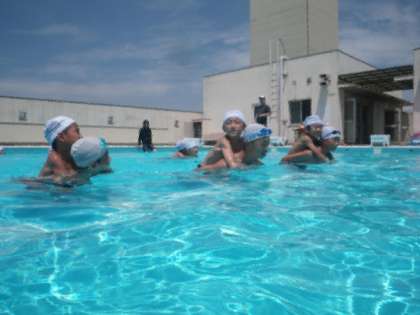 本日の3時間目、1年生と6年生との「なかよしプール(交流プール)」を行いました。1年生と6年生が一緒にプールに入り、水の掛け合いっこやまたくぐり、水中じゃんけんをしたり、6年生が1年生をおんぶしての競争などをして楽しみました。1年生にとっても、6年生にとっても、楽しい45分になりました。