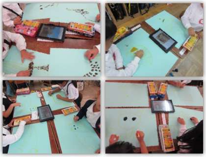 1年生の図画工作の学習です。先日の動物園への遠足で、見た動物の中から、描きたい動物を選びました。そして、タブレットを使って動物の姿を確かめながら、描いていきました。