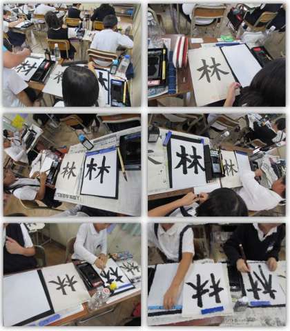 10月22日(月) 4年生の国語の学習です。毛筆で『林』と書きました。