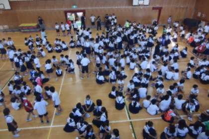 いろいろな学年の子どもとまじりあって手をつなぎ、楽しい集会となりました。