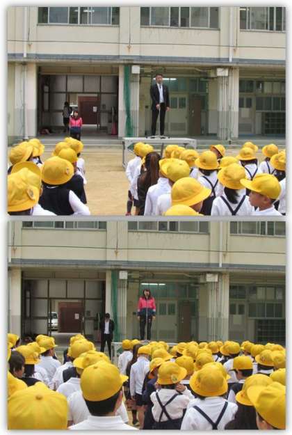 初めに、学校長から、職員室に来る人のあいさつの仕方がとてもよくなったこと、これから朝、気温が低くなることが多くなるので、体調をしっかりとととのえましょう、という話をしました。