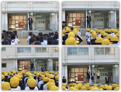 月曜日の朝、全校朝会の様子をご紹介します。初めに、学校長から、先日、4年生の遠足で役所にいた時、とてもマナーが良い、あいさつもしっかりとできていますね、と褒められたことを伝えました。