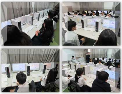 5年生の総合学習の様子です。今日は2組がパソコン室に行き、プログラミング学習に取り組みました。