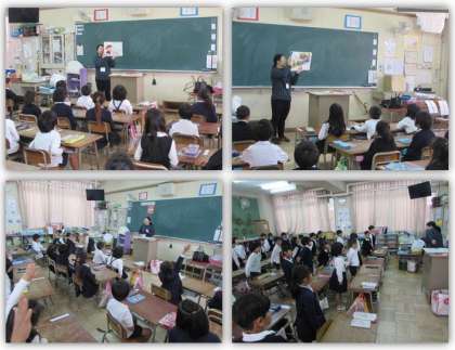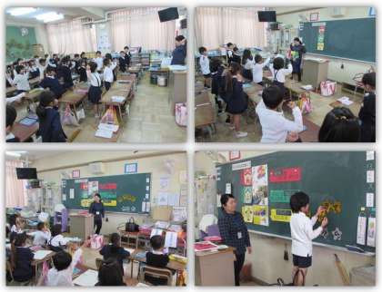 本日、北津守小学校の栄養教諭の方にお越しいただき、1年生の食育を行いました。本日は、元気な体を作るための3つの栄養「赤」「緑」「黄」のグループについて、学習しました。