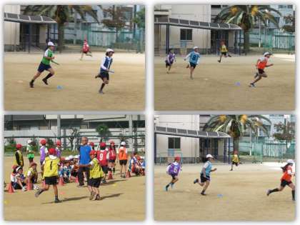 11月16日(金) 5年生の体育の学習です。運動場で、リレーを行いました。