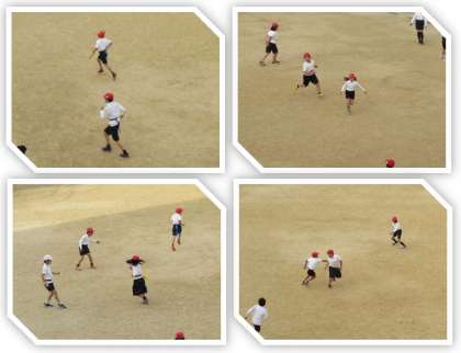 11月16日(金) 4年生の体育の学習です。ウォーミングアップとして、しっぽとりゲームを行っています。