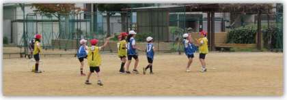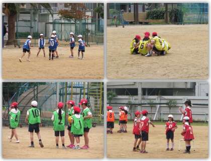 3年生の体育の学習です。チームごとに作戦を練って、ポートボールの試合に臨みました。