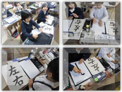 11月19日(月) 4年生の国語の学習です。毛筆で『左右』と書きました。