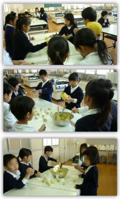 本日、2年生は学習園で収穫したサツマイモを使って、おいもパーティーを開きました。お芋団子を作って、おいしくいただきました。