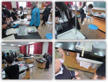 5年生の理科の学習です。振り子実験装置を作り、実際におもりをゆらして、振り子のゆれが一定の時間でくり返すかどうかを調べました。