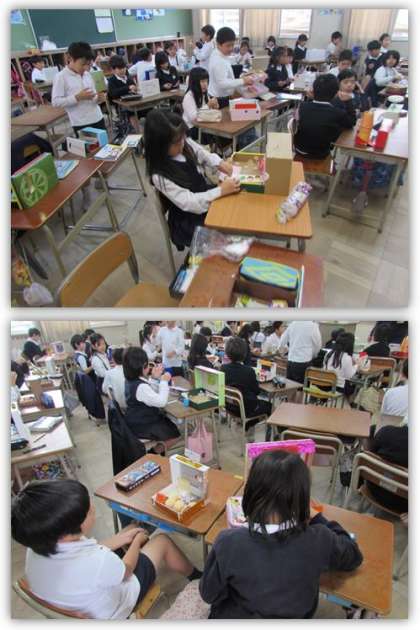3年生が、立体作品を講堂へと運ぶ前に、最後の点検を行っています。
