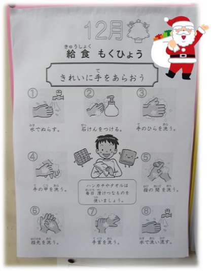 12月の給食目標です。12月の目標は『きれいに手をあらおう』です。