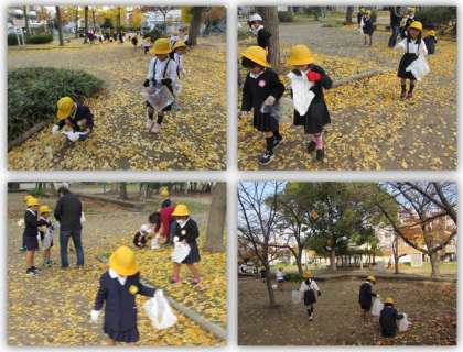 1年生の生活科の学習です。田端公園に行き、落ち葉を集めました。黄色のイチョウの葉が、たくさんありました。