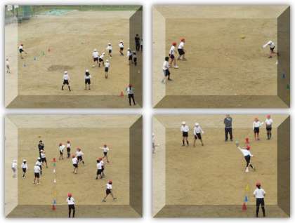 12月7日(金) 4年生の体育の学習です、運動場で、ドッジボールを行っています。