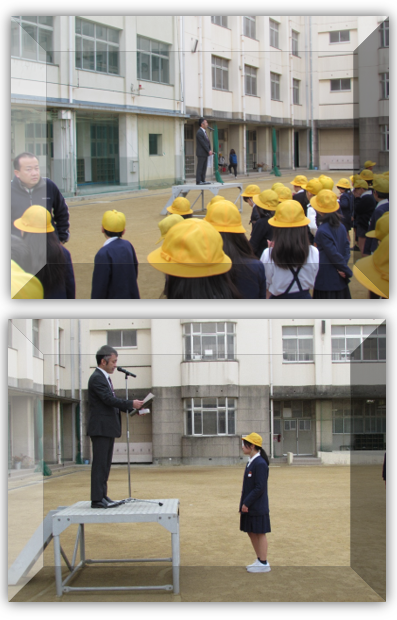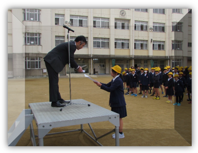 初めに、学校長から、税に関する習字の表彰がありました。6年生の児童が、表彰されました。