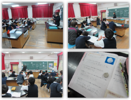 4年1組は、理科室に行って実験をし、水や空気の体積と温度の関係を、ノートにまとめています。