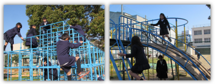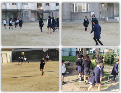 休み時間になりました。子どもたちが運動場で元気に遊んでいます。
