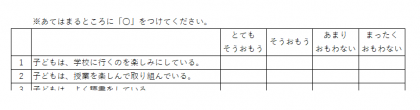 本項では、よりよい学校づくりを目指して日々取り組んでいますが、さまざまな改善をしていくために、保護者の皆様にアンケートのご協力をお願いいたします。子どもたちにもアンケートを実施して、結果は後日お知らせいたします。